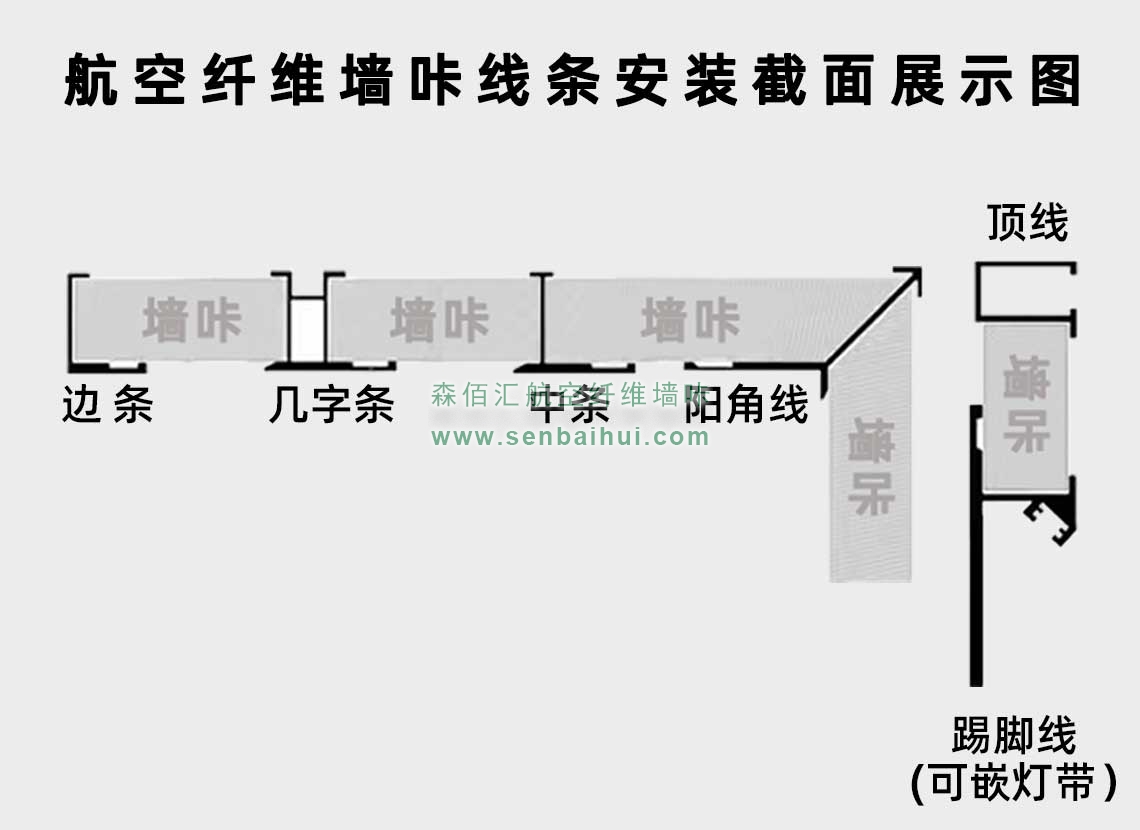 鹤岗航空纤维墙咔铝合金带灯中条(钛金氧化)